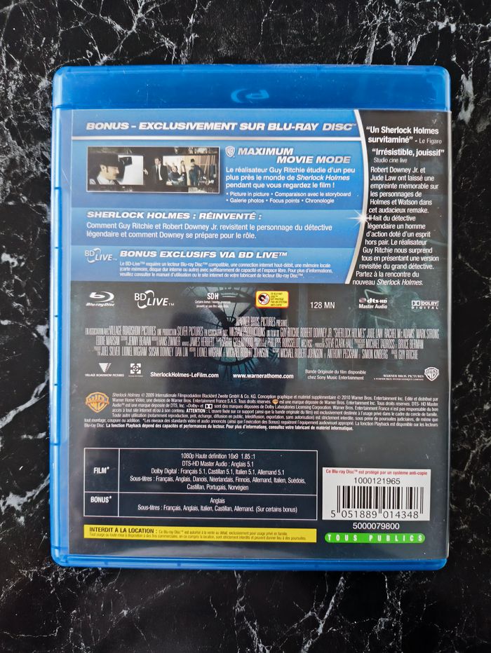 Film Sherlock Holmes (2009) en très bon état. Aventure, Action et Mystère de Guy Ritchie avec Robert Downey Jr., Jude Law, Rachel McAdams, Mark Strong et Eddie Marsan. Plusieurs autres films (DVD et blu-ray) et séries télé disponibles sur mon dressing. Si vous avez des questions ou souhaitez plus de photos, n'hésitez pas à me demander. Prix négociable seulement si vous achetez plusieurs articles. N'hésitez pas à créer un lot et à faire une proposition raisonnable et à me demander un prix. Tag de recherche : #neboo_video #neboo_bluray #neboo_film blu ray bluray langue français française French FR