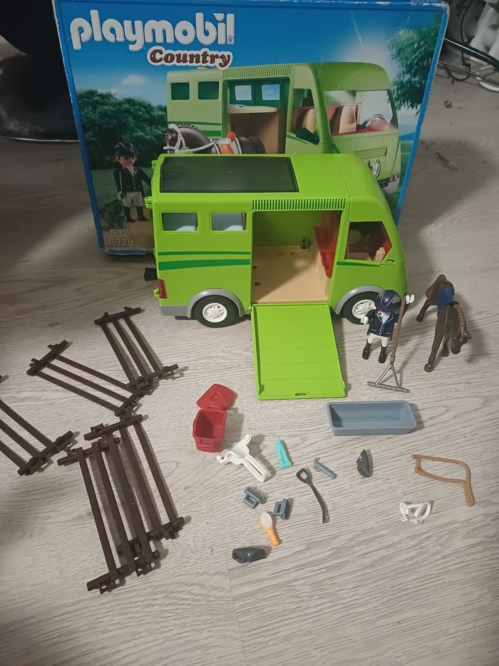 Vends van chevaux playmobil avec tous les accessoires présent sur les photos ainsi que la boîte, le tout en très bon état.