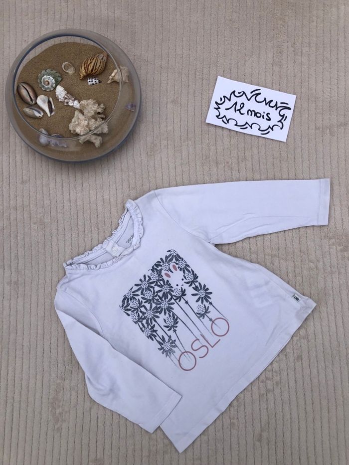 Ensemble, 12 mois (74cm), vêtements de premières mains, Obaïbi : - un t-shirt à manches longues, ouverture pressionnée en haut du dos pour faciliter le passage de tête, motif lapin, inscription ´OSLO’, bon état car un petit point présent au niveau de la manche et un autre très léger au niveau du col (cf photo) - un jean, deux poches à l’avant et deux poches à l’arrière, fermeture boutonnée, tour de taille réglable grâce à un élastique avec des boutons, bon état car effet délavé sur une jambe. 🛍 Dressing trié par taille, les catégories sont accessibles à partir de mon profil ! Bon shopping ! #fille12moisnikita40000