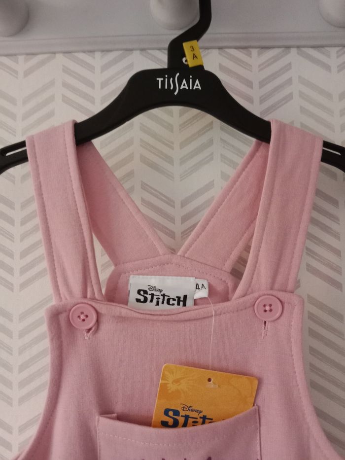 Robe à bretelles couleur rose motif Stitch et Angel. Disney 4 ans