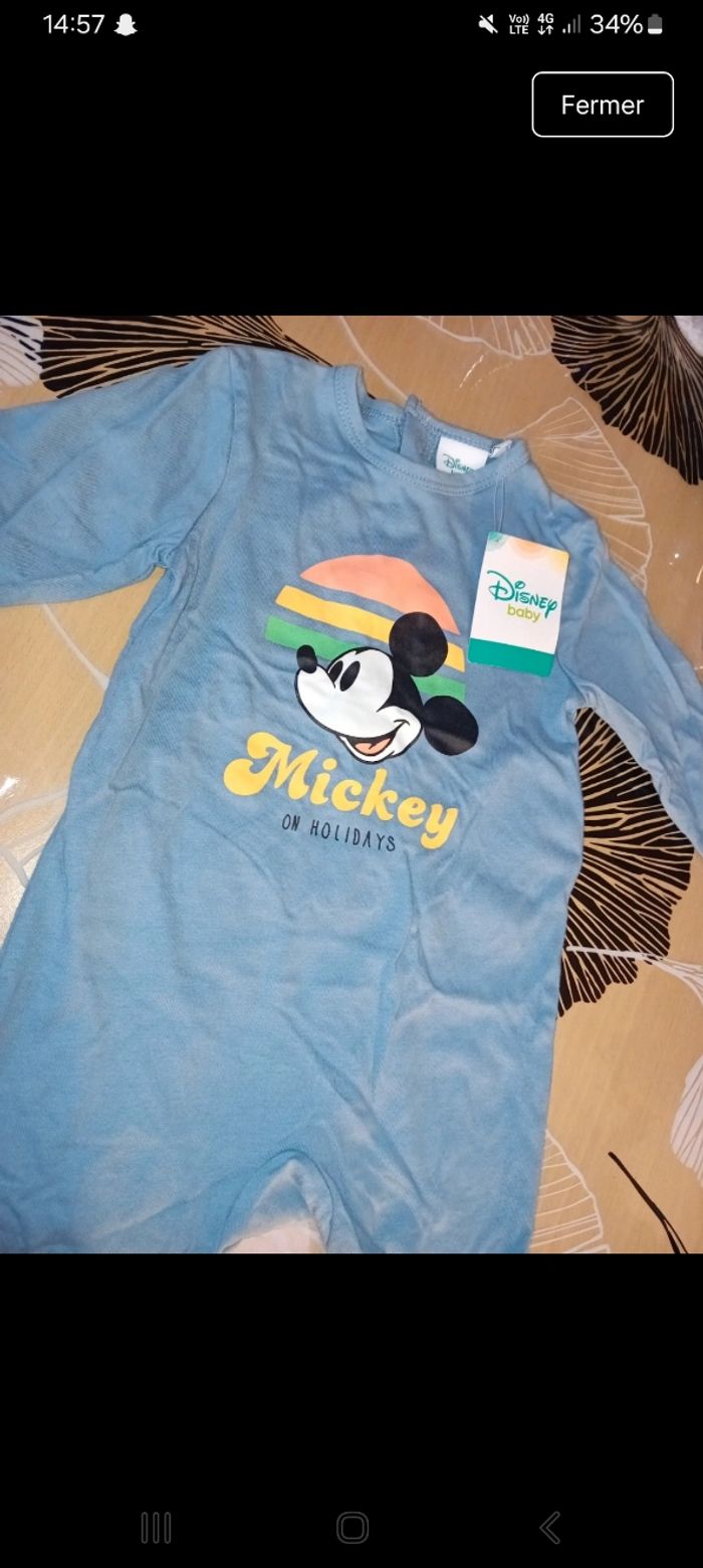 Description du produit ​Type : Pyjama une-pièce (grenouillère/dors-bien) à manches longues Détails : Fermeture à pressions au dos (typique des modèles bébés). Taille: 9 moi Très bon état Article étiquetée neuf jamais mis