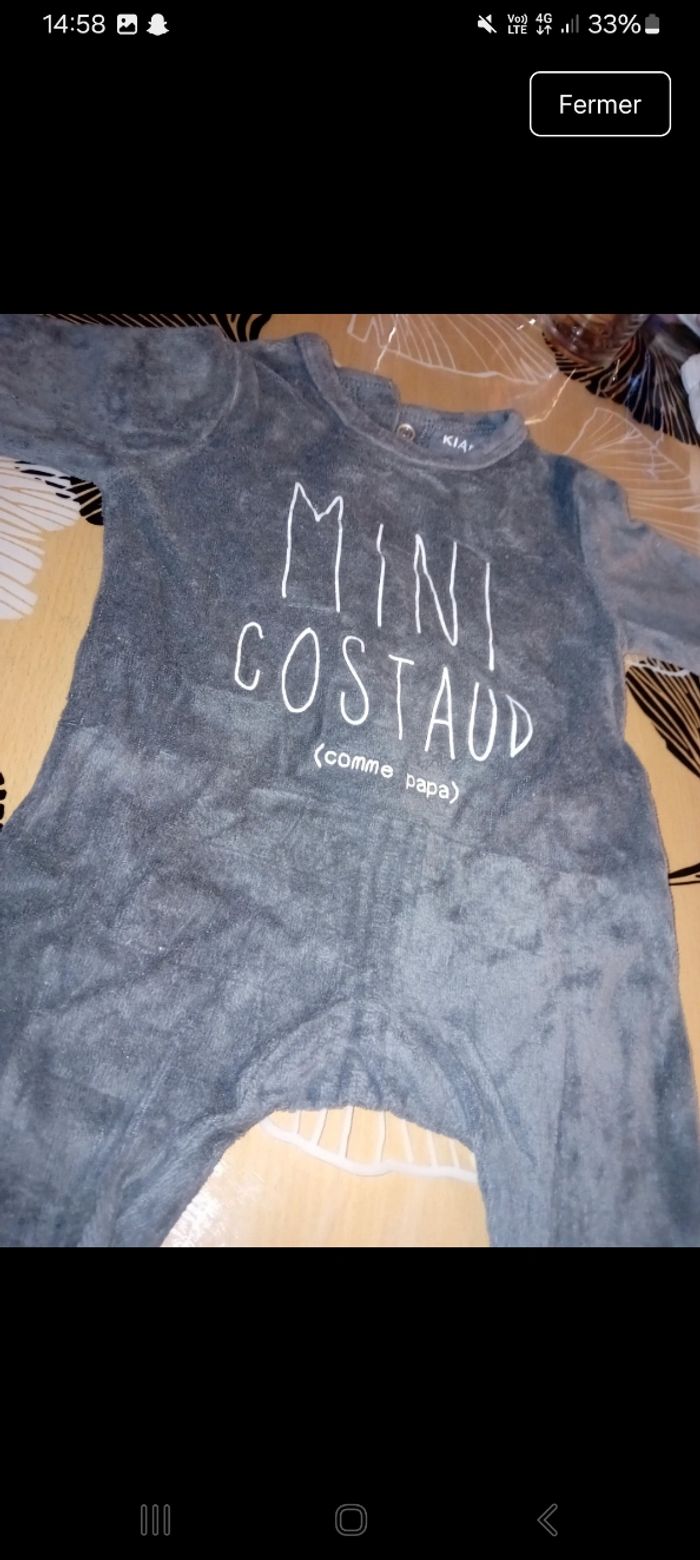 ​Description du produit ​Type : Dors-bien (grenouillère) une pièce en velours tout doux, idéal pour garder bébé au chaud. ​Couleur : Gris anthracite chiné. ​Design : Inscription humoristique en blanc sur le torse : « MINI COSTAUD (comme papa) ». ​Détails : Fermeture à pressions située sur le haut du dos et à l'entrejambe pour faciliter le change.