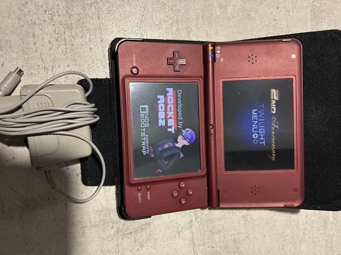 Console Nintendo dsi xl bordeaux , bon état général mais écran quand même rayé du à son âge. Vendu avec son chargeur d’origine et une carte sd et twilight menu comprenant divers jeux et que vous pouvez aussi télécharger à volonté.