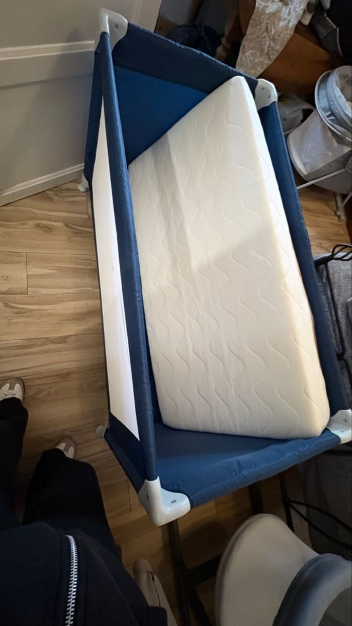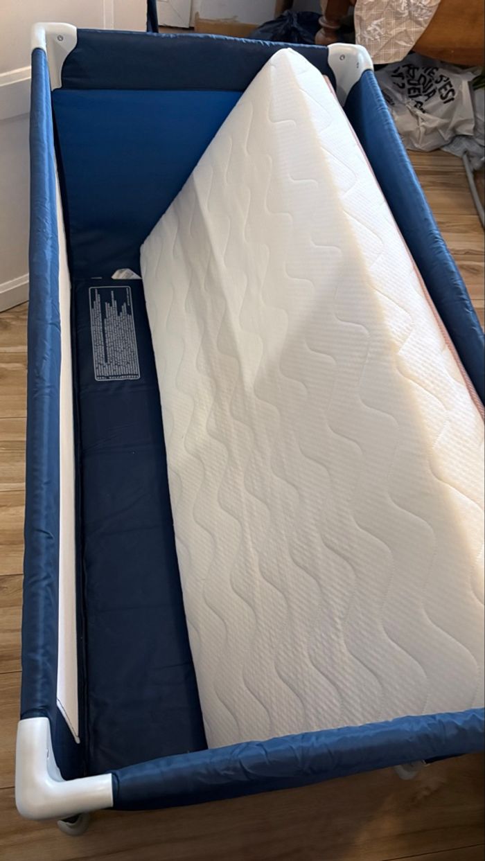 Je vends un lit parapluie Mots d’Enfant en excellent état, très peu utilisé. Il m’a servi uniquement de manière ponctuelle lorsque mes neveux venaient à la maison, ce qui explique son état impeccable. Le lit est vendu avec son matelas inclus. Facile à plier, à transporter et à installer, il est idéal pour les déplacements, les week-ends chez les proches ou en solution d’appoint à la maison. Produit propre et soigneusement conservé.