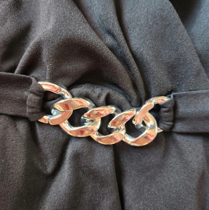 Blouse noire cache-cœur – Ceinture chaîne argentée – Taille S – Amisu – Neuve - photo numéro 6