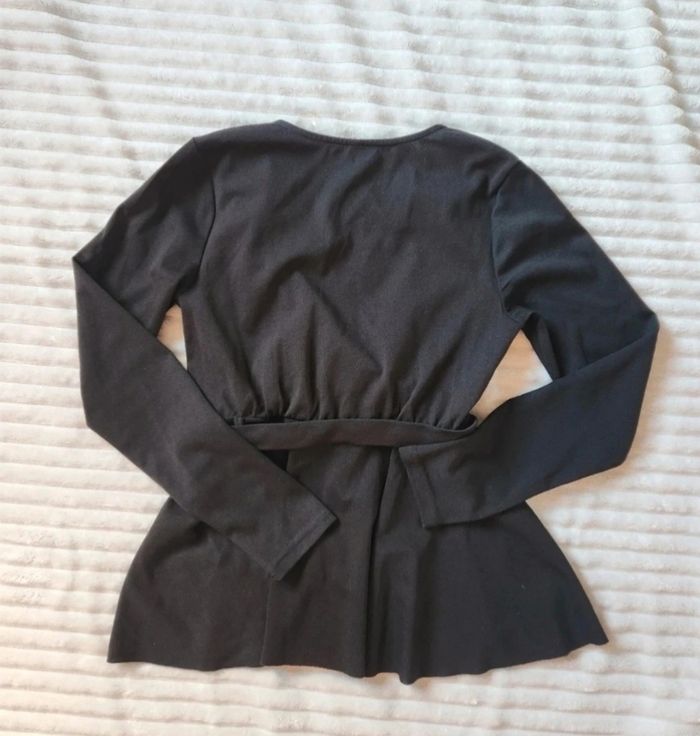 Blouse noire cache-cœur – Ceinture chaîne argentée – Taille S – Amisu – Neuve - photo numéro 4