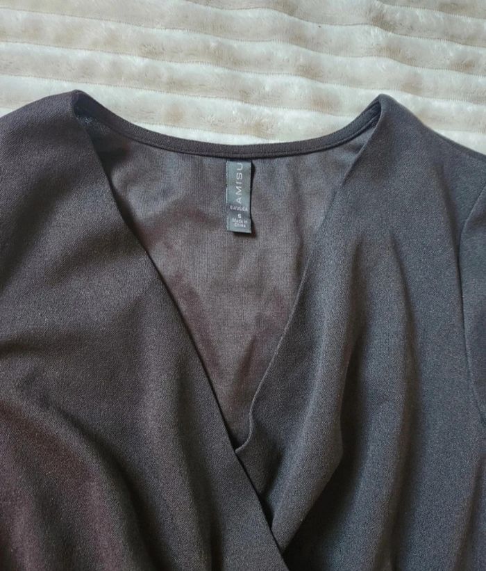 Blouse noire cache-cœur – Ceinture chaîne argentée – Taille S – Amisu – Neuve - photo numéro 3