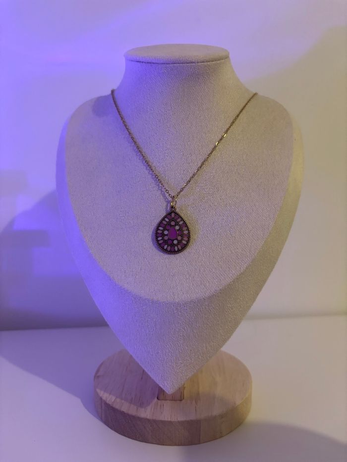 Collier doré pendentif goutte violet – Style bohème chic - photo numéro 2