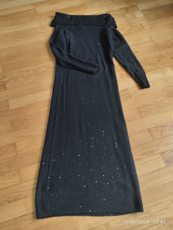 Robe longue en laine longue 129 cm encolure dégagée