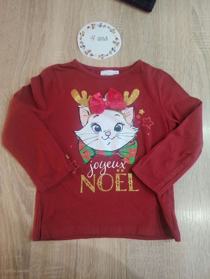 Ensemble fille en taille 4 ans: ✅ T-shirt Disney collection de Noël "Marie" des Aristochats en très bon état ✅ Leggings DPAM état satisfaisant il n'y a pas de trou ni de tâche mais le tissu a des bouloches voir photos. Avec un rasoir pour tissu cela peut partir.