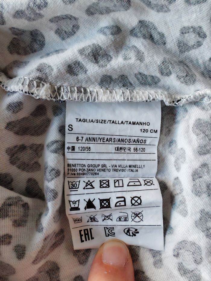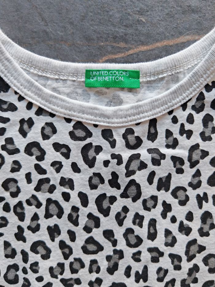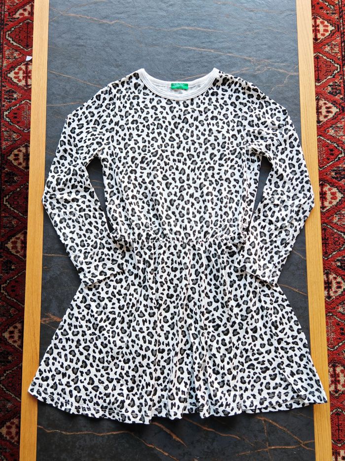 Jolie petite robe à manches longues United Colors of Benetton, 6-7 ans (120 cm), en excellent état, très peu portée. 100% coton, motifs léopard, ceinture élastique, jupe "qui tourne".