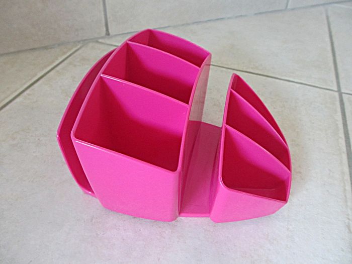 Multipot à crayons 8 compartiments Cep Permet de ranger tous les accessoires de bureau. Dimensions : largeur 14,5 cm x profondeur 15 cm x hauteur 8,5 cm. Très bon état (petites taches d’encre au fond de 2 compartiments : voir photos).