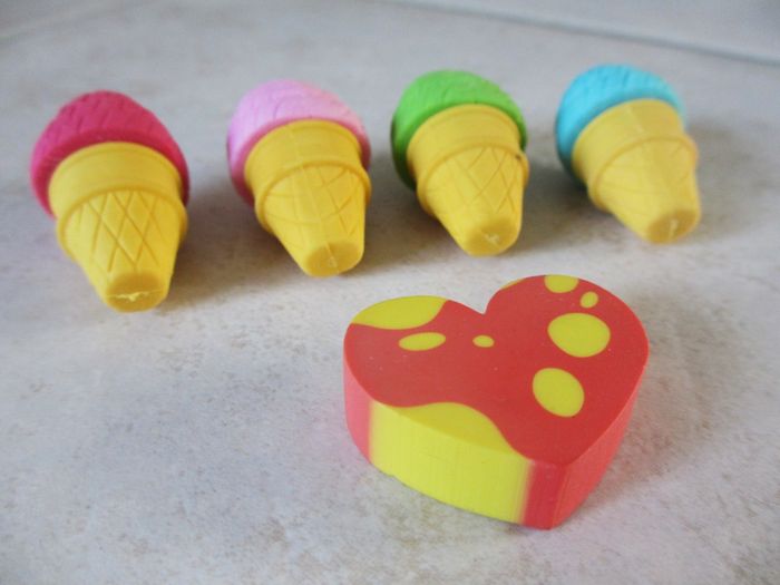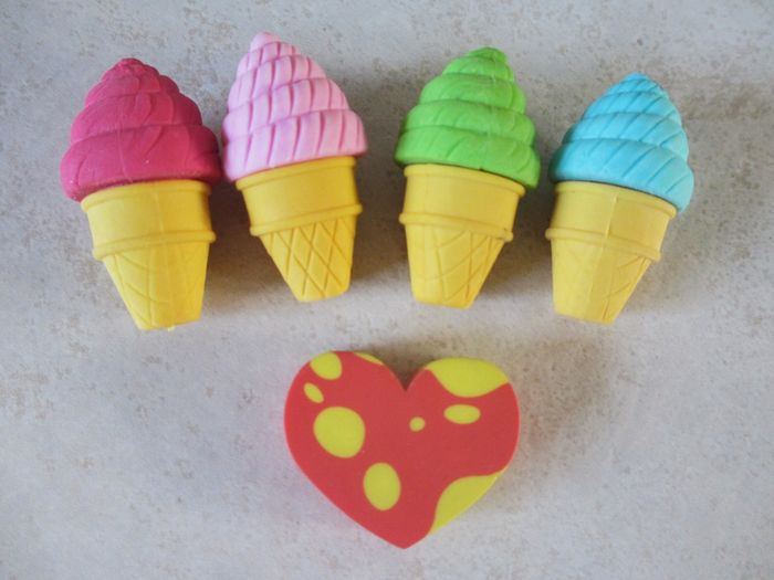 Lot de 4 gommes glaces + 1 gomme cœur - photo numéro 1