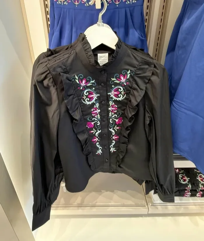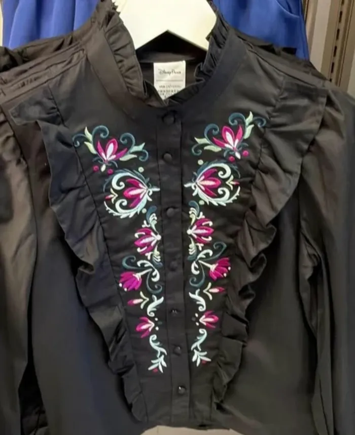 Chemise très ornée, manches longues et boutonnée, avec jolis détails dans le front. Inspiré des vêtements d'Anna dans Frozen (La reine des neiges). Taille à sa taille. Marque Her Universe en collaboration avec Disney. Demandez votre taille (XS-XL). Totalement neuf (pickup).