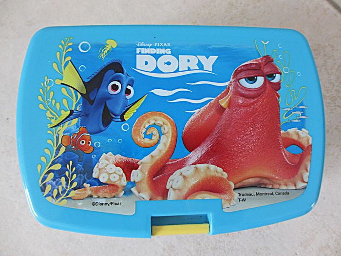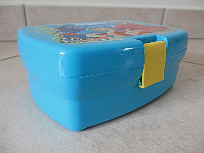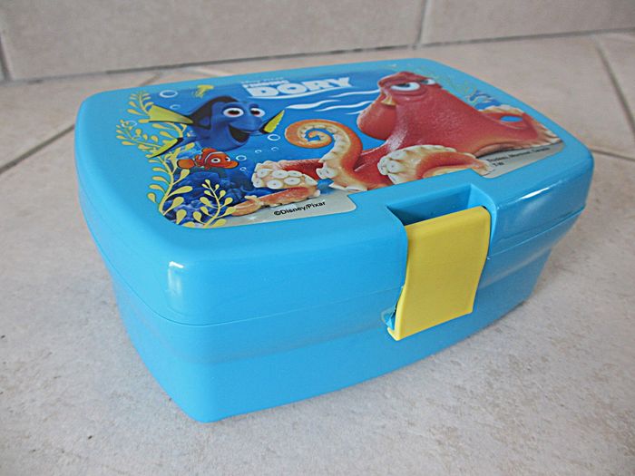 Boîte à goûter rectangulaire enfant en plastique Dory Dimensions : 16,5 x 11,5 x 6,5 cm. Très bon état.