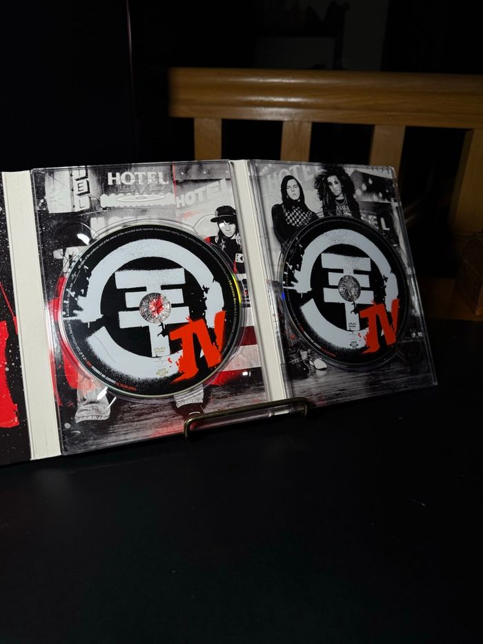 Double DVD de Tokio Hotel, Tokio Hotel TV : Caught on Camera, édition Turner SR Records Ce DVD est cartonné et un peu plus rare que les éditions classiques État : Bon état général, quelques petits défauts mineurs sur le carton, mais rien de majeur Numéro de série : 426178740016 Les DVD marchent parfaitement