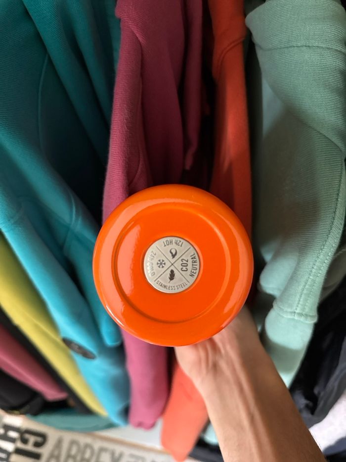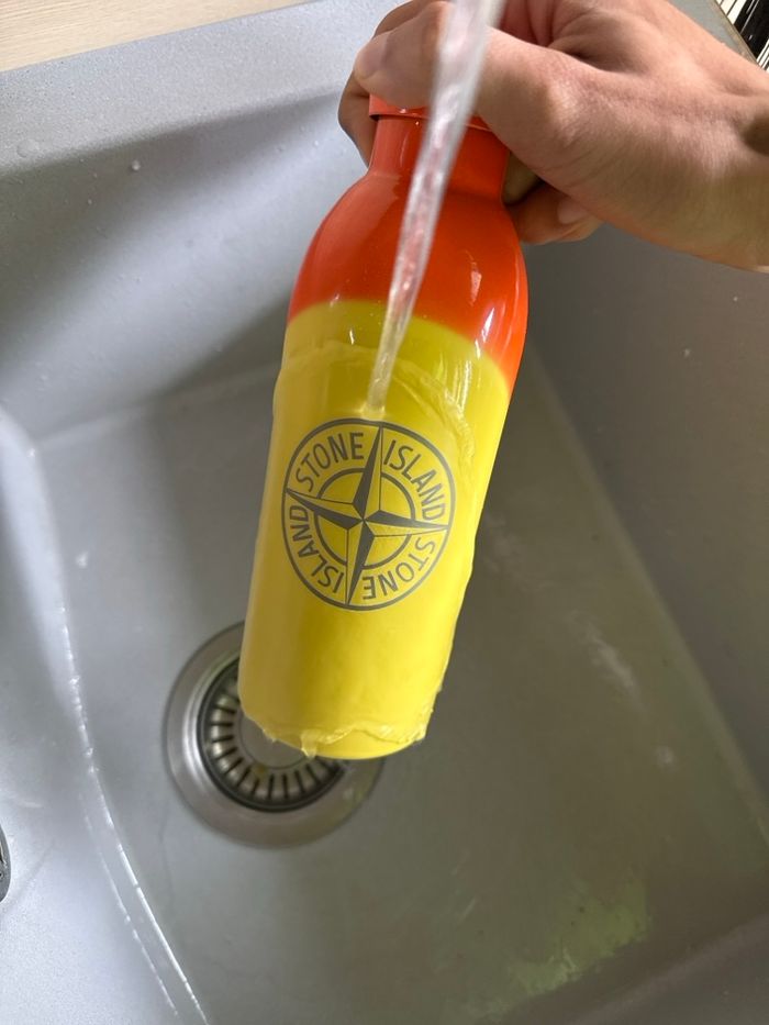 Bouteille en acier inoxydable Stone Island de couleur orange thermo-réactive change de couleur du orange vers le jaune grâce à la chaleur, garde les boissons chaudes pendant 12h et froides pendant 24h ⭐️ Condition : 10/10 🎨 Couleur : Orange,jaune 📦 Expédition rapide et soignée