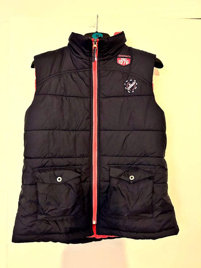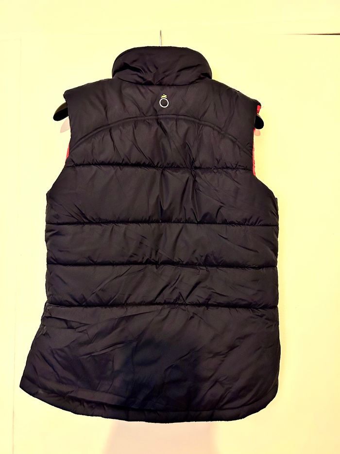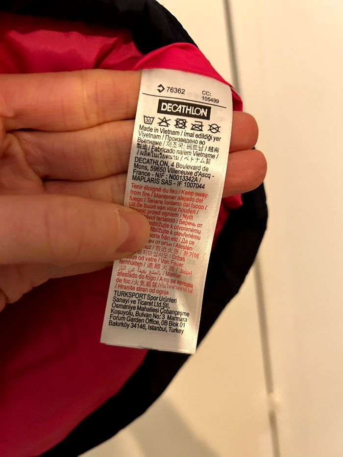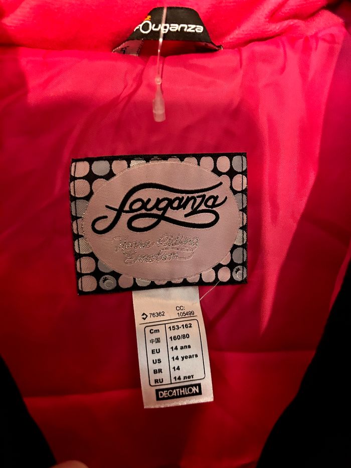Vend doudoune fille d'équitation bleue marine et fushia à l'intérieur, poche sur les côtés acheter 28e, tient chaud marque Décathlon Fouganza