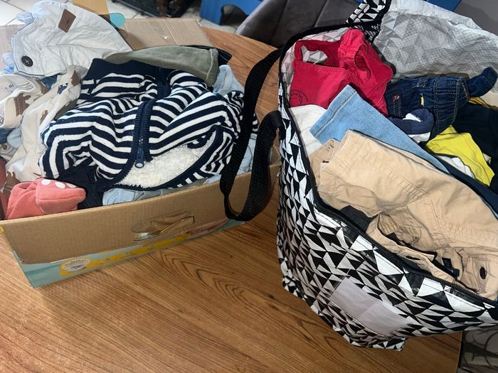 Lot 130 vêtements Taille 6/9/12 mois De toute marques Short / barboteuse / pull léger / pull chaud / t-shirt / veste / salopette / survêtement / bodies / pyjamas et bien d’autres Photos à la demande j’ai tout dans le téléphone