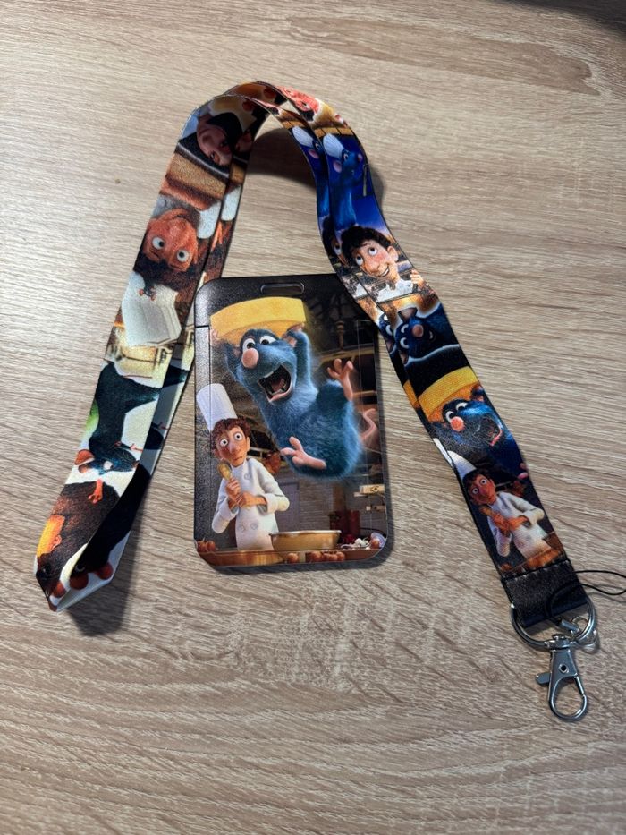lanière (tour de cou) et porte carte ratatouille disney idéal pour les billets ou pass annuel Disneyland paris, pour célébrer les 30 ans du parc, carte de bus, badge de travail lanière, porte carte, porte clé, pin trading