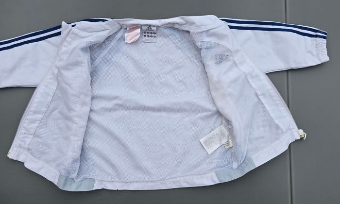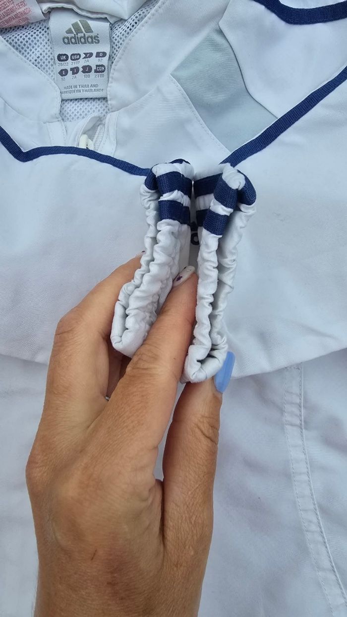 En tres bon etat mais pas neuf à ete utilisé Bleu clair et blanc 2 ans ou 92cm Adidas
