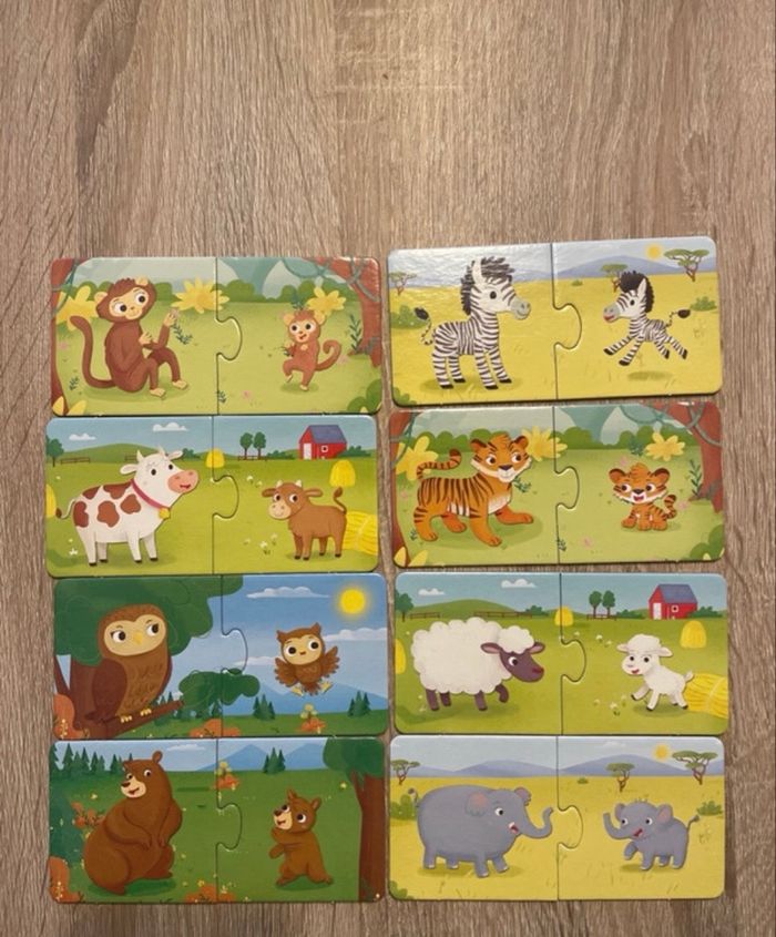 Les animaux et leurs petits Jeu de logique Puzzle Animaux 8 cartes de paires parents/enfants Marque zig zag - king jouet Neuf !