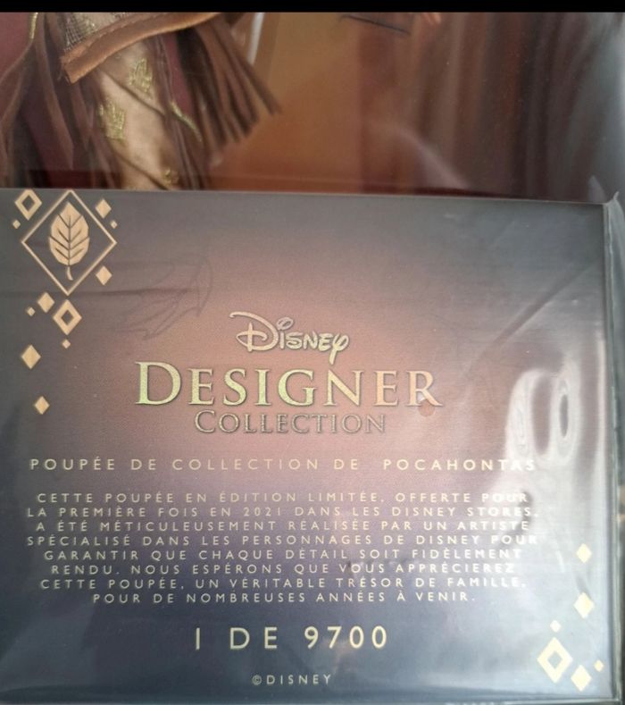 -avec certificat d'authenticité - je vend cette superbe poupée de collection limitée 7517 - pocahontas très recherché - Designer ultimate princess célébration collection Disney - année store - 2021 - elle est présenté dans sa boite d'origine. - avec fenêtres ( voir les photos). -La poupée porte une tenue haute gamme Richement détaillé. - avec des finitions détaillé et élégante. -des matières travaillé et un Décor - un véritable objet de collection. Elle est en tres bonne état Jamais sorti elle est toujours resté dans sa boite