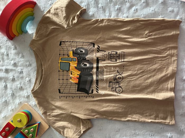 teeshirt manches courtes beige impression tractopelle 7/8 ans primark - photo numéro 1