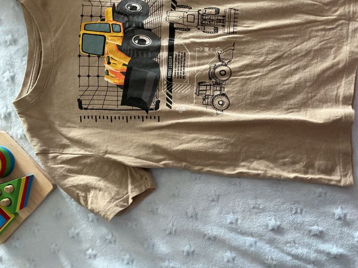 teeshirt manches courtes beige impression tractopelle 7/8 ans primark - photo numéro 3