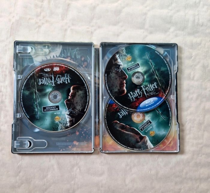 Bonjour, ​Je propose l'édition Ultimate en boîtier métallique (Steelbook) du film "Harry Potter et les Reliques de la Mort - 2ème Partie". ​Détails de l'objet : ​Contenu : L'ensemble comprend le disque Blu-ray du film, le disque DVD du film ainsi qu'un disque de bonus. ​État physique : Le boîtier métallique présente des micro-rayures d'usage visibles sur les photos. Les disques sont en très bon état visuel. ​ #HarryPotter #Steelbook #Bluray #WarnerBros #WizardingWorld #Collection