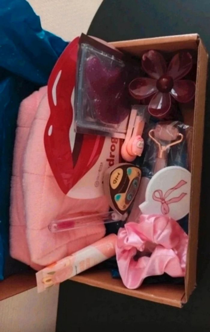 Bonjour, Je mets en vente une box de bien être neuf. Comprend tout ce qu'il y a sur la photo donc 11 articles 🍉 Un masque pour le visage Une crème pour les mains Une brosse à cils Un beauty blinder Une pince à cheveux Une trousse Un coupe ongle Un chouchou rose Un miroir de poche Un ensemble de massage Un masque pour les yeux Un cadeau sera ajouté et au choix un bijou (un collier ou un bracelet mystère qui sera ajouté à votre commande). Bonne journée à vous et n'hésitez pas pour plus d'informations 🦋