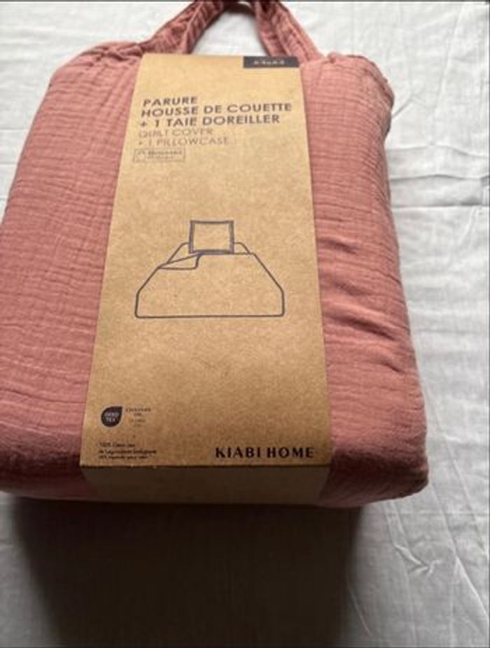 🌸 Parure housse de couette 1 personne – Gaz de coton – Rose terracotta – NEUVE Craquez pour cette magnifique parure en gaz de coton, à la texture naturellement gaufrée, douce, légère et ultra confortable 🤍 ✨ Neuve, jamais utilisée, encore dans son emballage d’origine. 🛏️ Détails : • Housse de couette 140 x 200 cm (1 personne) • • 1 taie d’oreiller 63 x 63 cm • 🌿 100 % coton (gaz de coton respirant) • 🎨 Couleur : rose terracotta / vieux rose, chaleureuse et tendance • 🏷️ Kiabi Home • ✅ État impeccable Idéale pour une chambre douce, bohème ou romantique 🌾 Apporte une vraie touche cosy et élégante Parfaite aussi comme cadeau 🎁