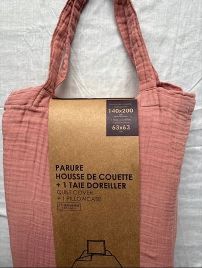 Parure housse de couette en gaze de coton rose terracotta - 140×200 (neuve) - photo numéro 1