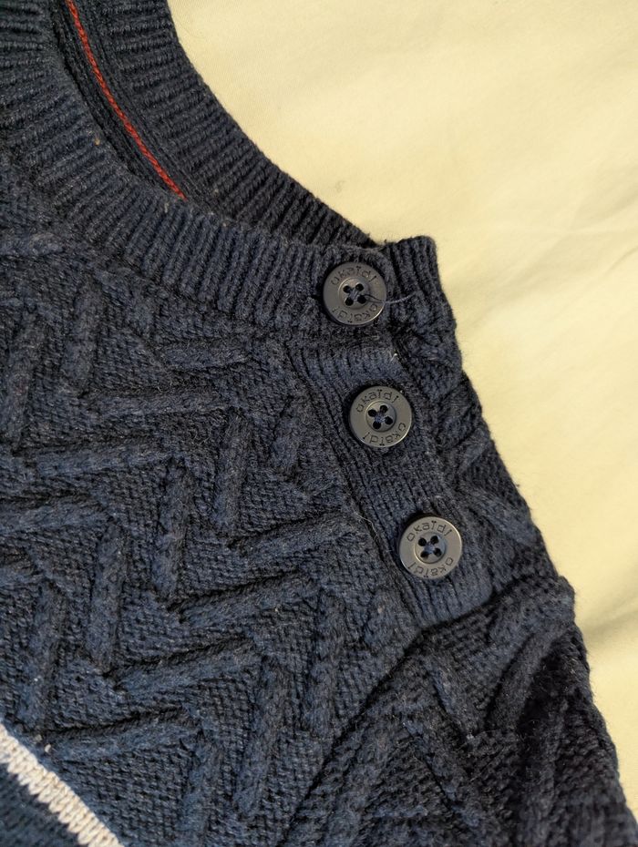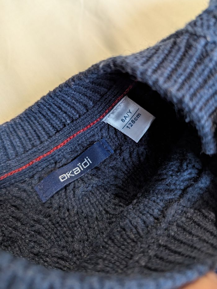 Pull marin chaud idéal température négative Légère bouloches dues à la composition du pull 5% de laine. Taille 8ans