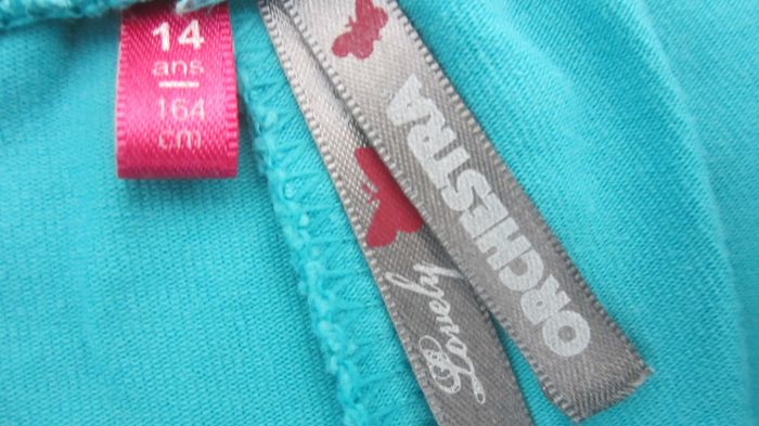 Short coloris turquoise. Taille élastiquée. Marque Orchestra. Taille 14 ans.