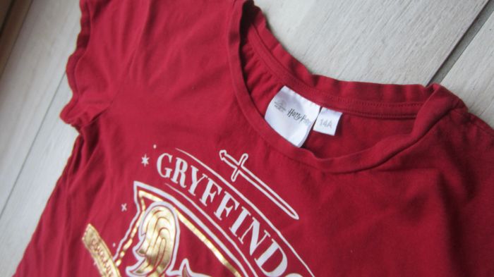 Tee shirt de coloris bordeaux avec inscription dorée. Taille 14 ans. Marque Harry Potter.