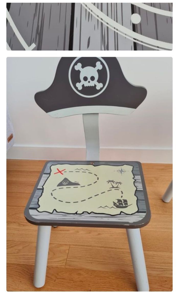 Mobilier enfant thème pirate tout en bois : 1 table + 2 chaises - photo numéro 4