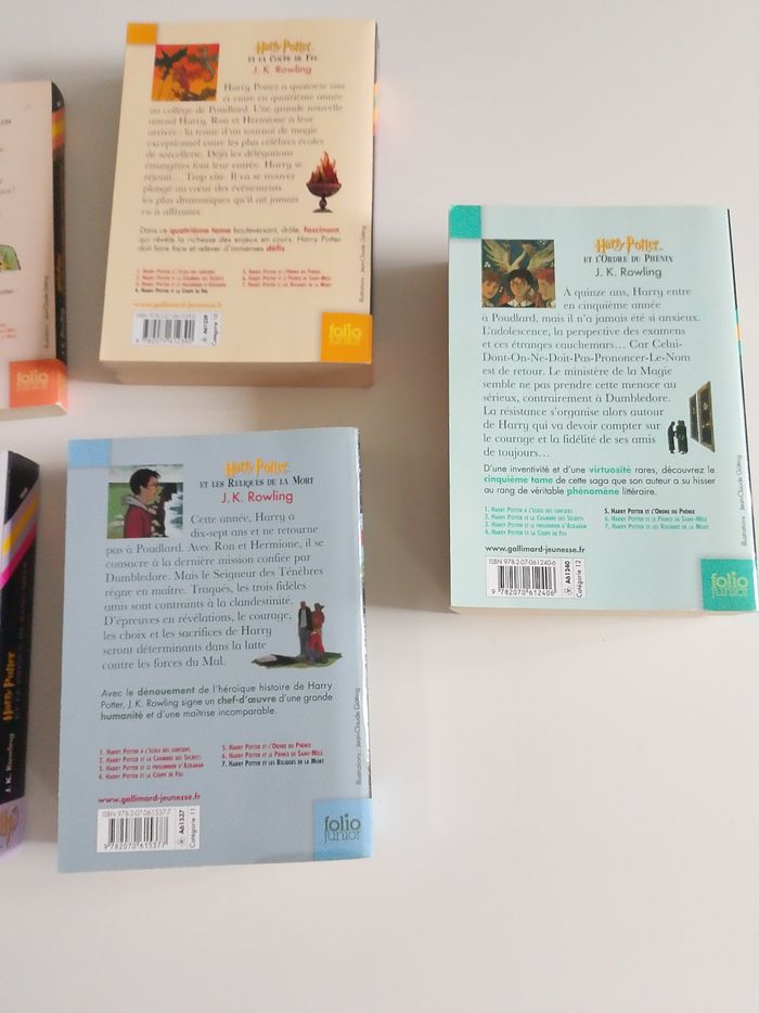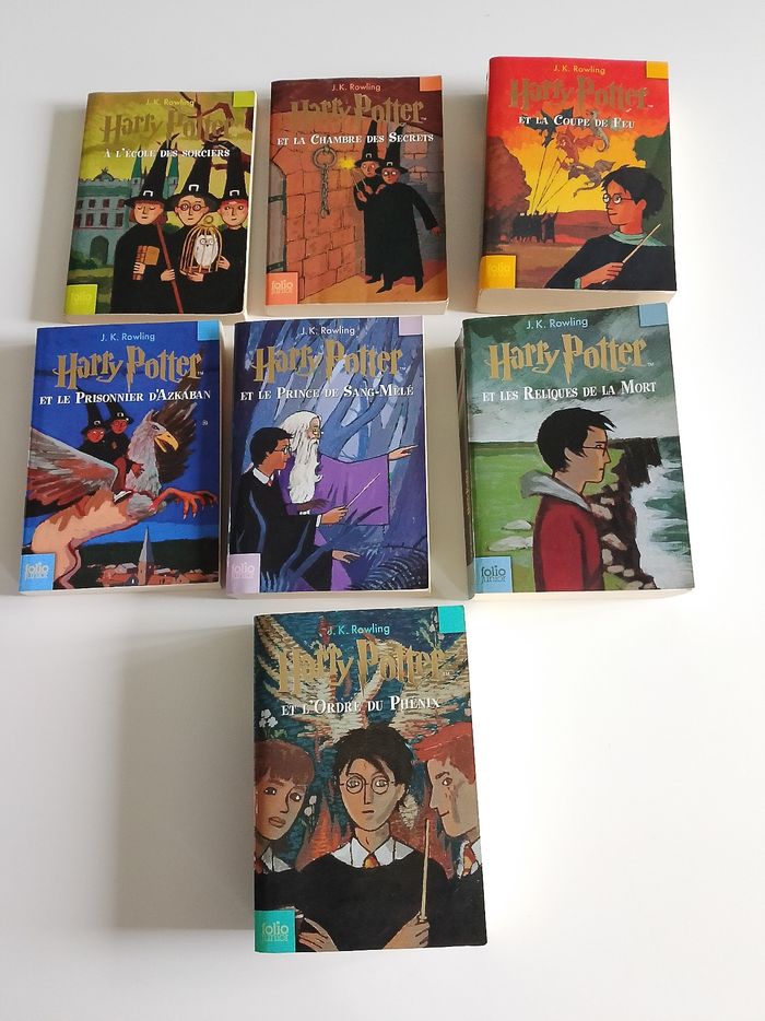 Lot des 7 tomes Harry Potter en bon état Gallimard Jeunesse Folio junior Harry Potter à l'école des sorciers Et la chambre des secrets Et la coupe de feu Et l'ordre du Phénix Et le Prince de sang-mêlé Et le prisonnier d'Azkaban Et les reliques de la mort