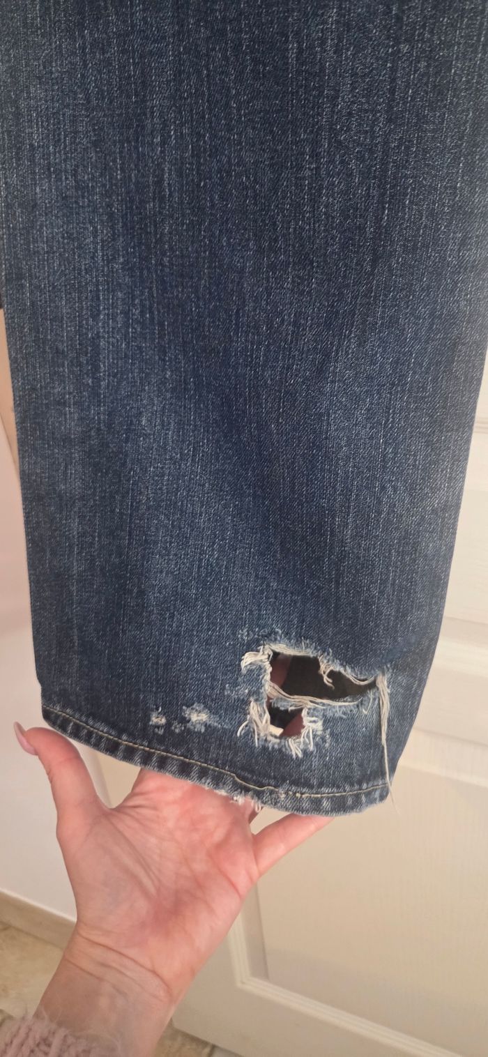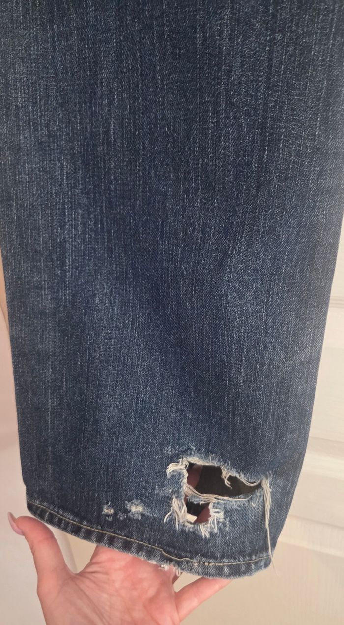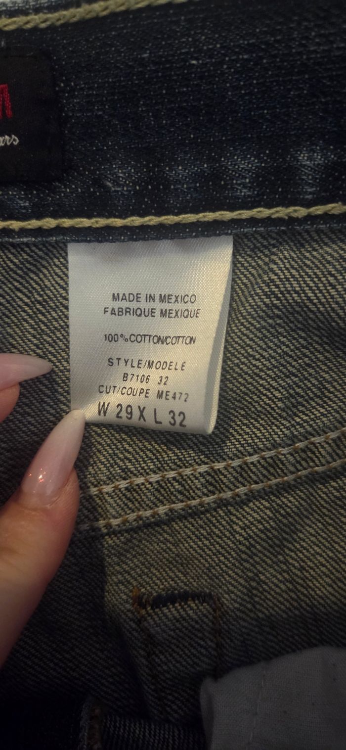 💙 Denim iconique – esprit années 2000 Superbe jean GUESS Premium, fabrication Mexique, denim 100% coton de belle qualité. Coupe droite légèrement évasée en bas (largeur 21/22 cm), style vintage très tendance. Délavage authentique avec usure naturelle et détails destroy discrets en bas des jambes à l’arrière ✨ Modèle intemporel, facile à associer. 📌 Informations essentielles Marque : GUESS Premium (Marciano) Taille indiquée : W29 L32 Correspondance approx. : 38 FR (à vérifier selon mesures) Matière : 100% coton État : Très bon état général ➝ Deux trous en bas du jean à l’arrière (usure normale, style destroy – voir photos) 📏 Mesures à plat Longueur totale : 103 cm Longueur entrejambe : 79 cm Largeur taille : 36 à 39 cm (légèrement extensible) Largeur bas : 21/22 cm ⚠️ Merci de bien vérifier les mesures avant achat. La couleur peut légèrement varier selon l’éclairage. Merci d’examiner attentivement les photos, détails et mesures fournis. Je reste disponible pour toute information complémentaire. 📦 Envoi rapide et soigné.