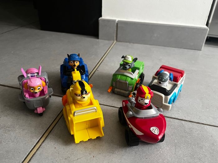 Lot de petites voitures pat patrouille en excellent état, les figurines sont incrustées dedans. 3€ unité sinon le lot à 12€