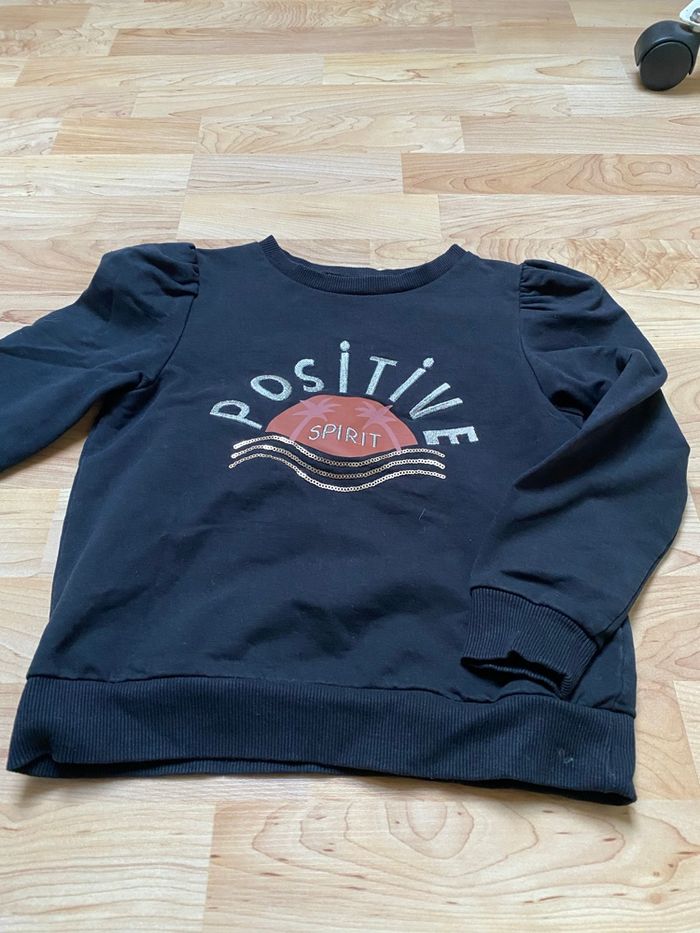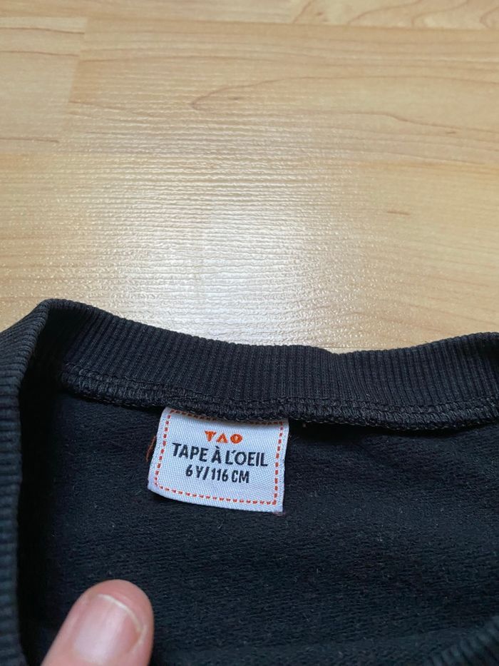 Sweat « Tape à l’œil » 6 ans (116cm) noir avec motif et inscription sur le devant Comme neuf
