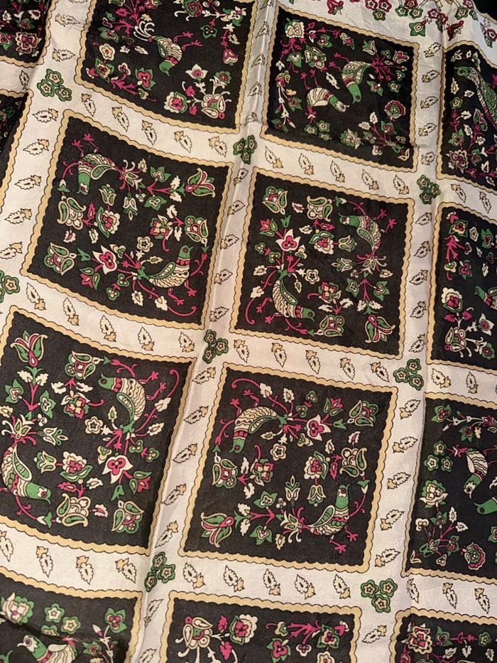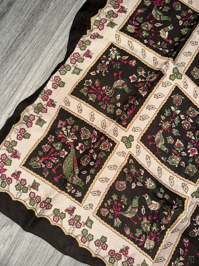Foulard carré de soie marron beige oiseaux faisans paons Vintage 63x63cm - photo numéro 6