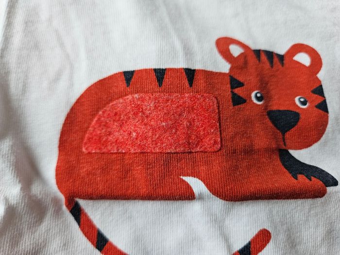 T-shirt manches courtes ( MC ) motif tigre, obaibi, 23 mois (86cm) avec boutons pression sur l'épaule. Très bon, état sans trou ni tâche. D'autres vêtements sont disponibles dans mon dressing en taille 24mois