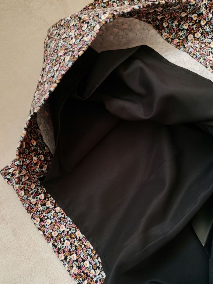 Robe fleurie en velours fin entièrement doublée. Sans poche. Taille indiquée M mais plutôt 42/44 maximum.