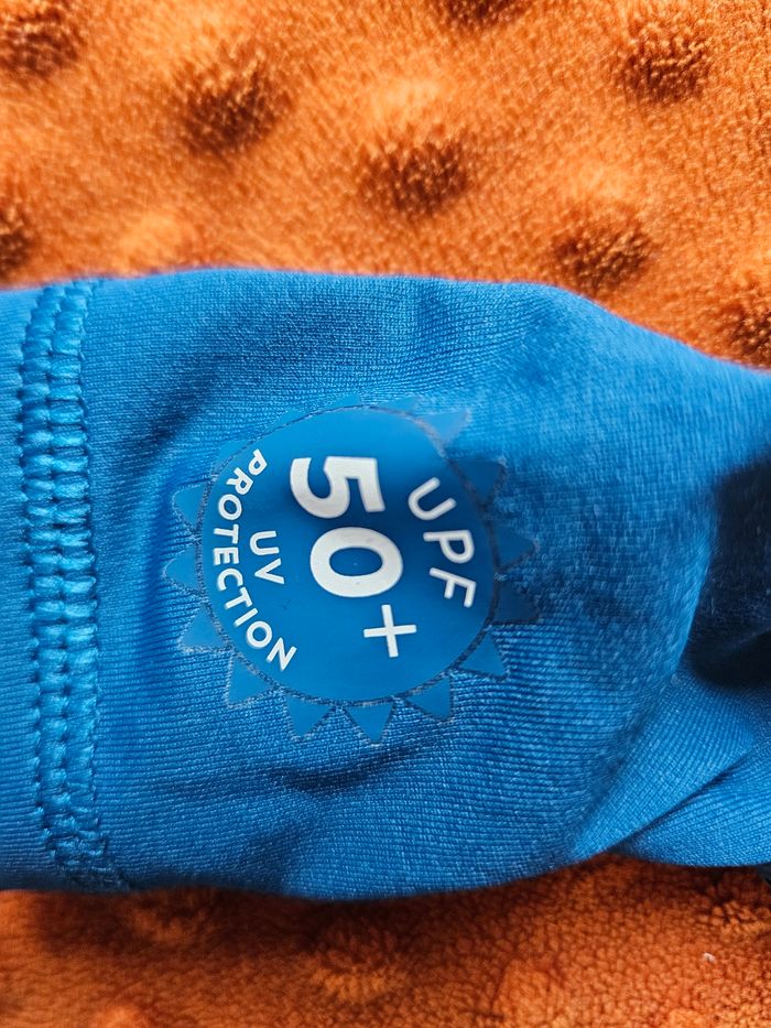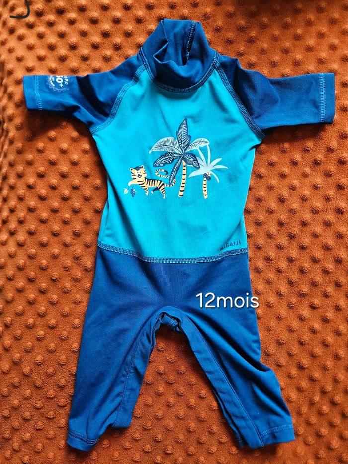 Combinaison uv piscine protection upf 50+, decathlon Très bon, état sans trou ni tâche, peu utilisé D'autres vêtements sont disponibles dans mon dressing en taille 12mois