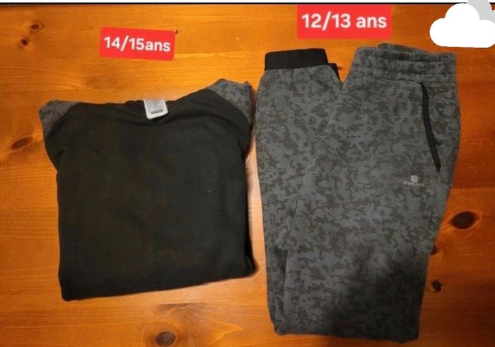 1 bas de jogging taille 12/13ans + Pull domyos decathlon 14/15 ans ⚠️ le pull est une taille 14 /15 ans mais il taille petit mon fils le mettait a 12 ans c est pour cette raison que je les vends ensemble