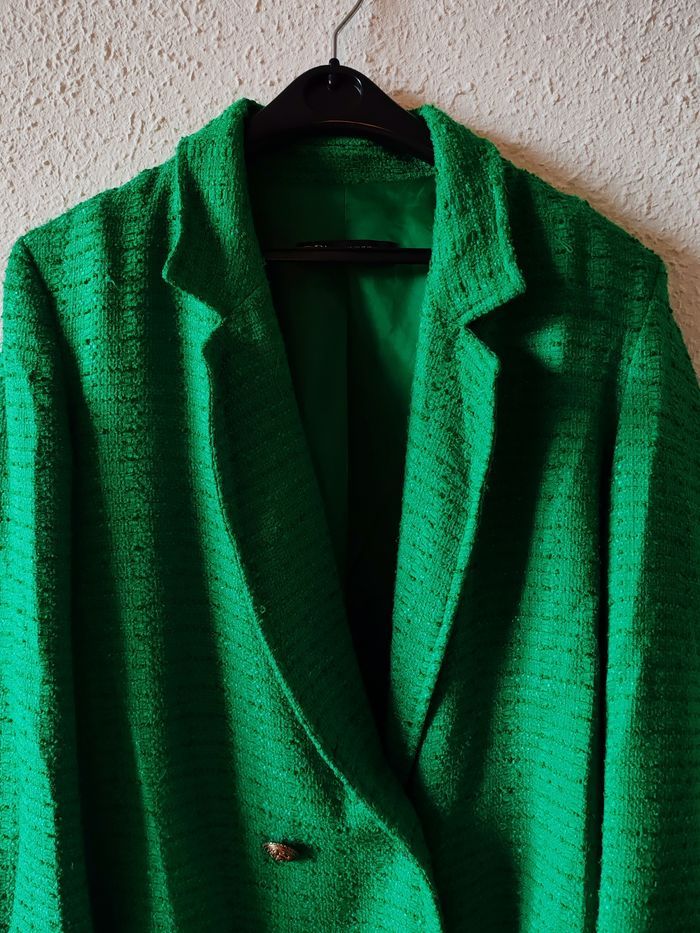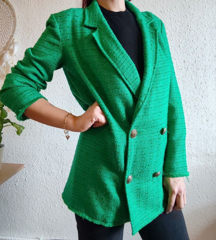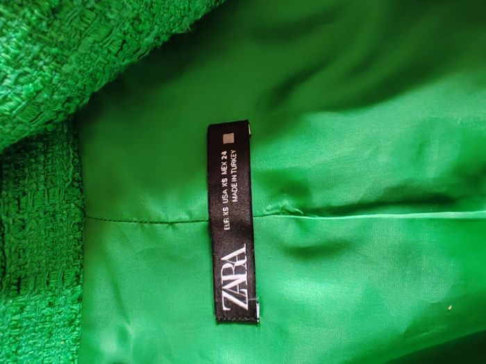 ✨ Veste verte de la marque Zara. À "frange" au niveau des poignets et du bas de la veste. 📏 En taille noté XS ⚠️ attention je trouve qu'elle taille très grand ! Je porte un M et elle va encore limite grand convient à un L pour une coupe ajustée M/S , pour un effet loose.⚠️ 🏷️ Très bon état général. 📦 Envoie rapide et soigné 💌 N'hésitez pas à me contacter pour plus d'informations.