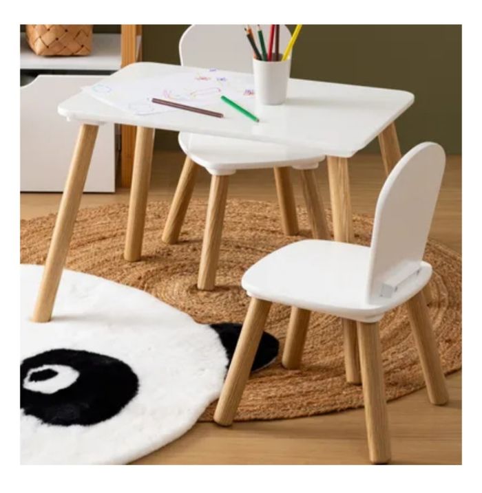 Je vends table enfant avec deux chaises, il vient à peine de sortir du carton il y a quelques jours mais malheureusement ma fille est trop grande (elle n'a que 3 ans et elle fait plutôt 5 ans...) donc les chaises semblent petites pour elle. Tout est neuf. Couleur : blanc