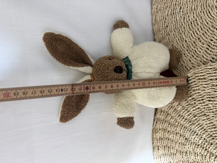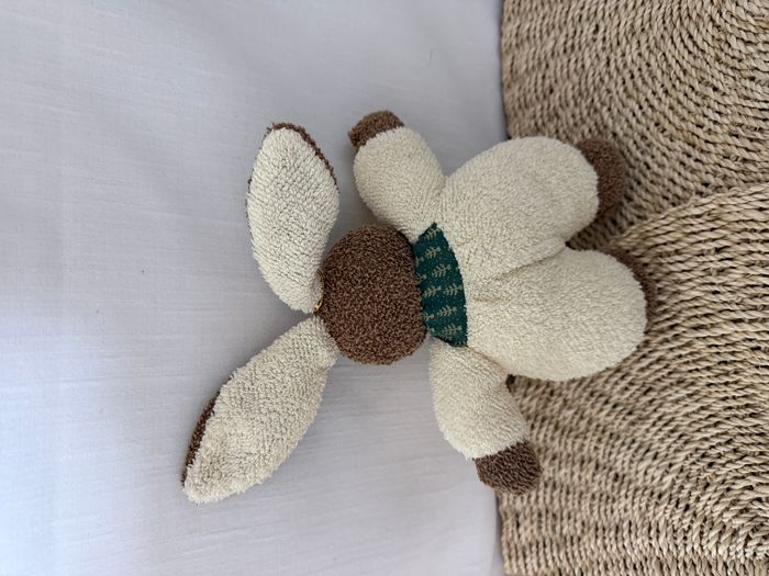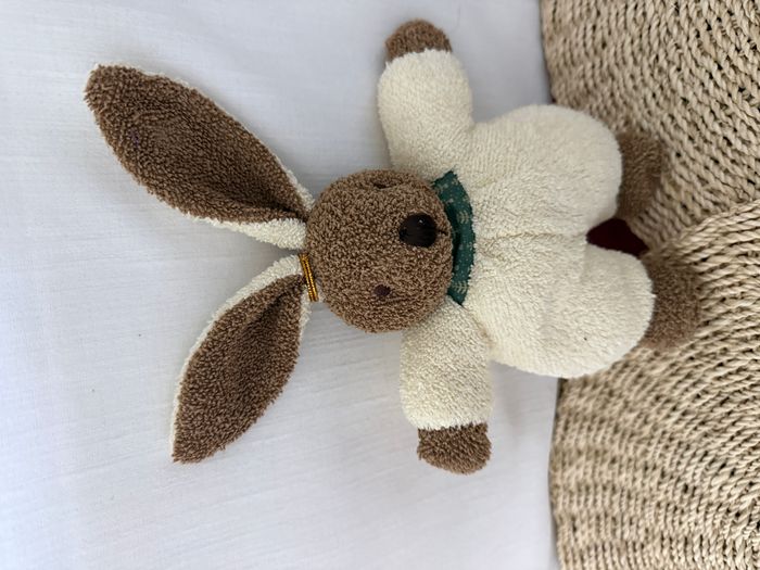lapin doudou sigikid marron blanc crème vert peluche à grelot  - photo numéro 5