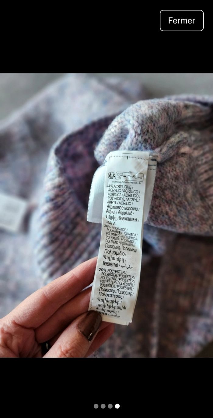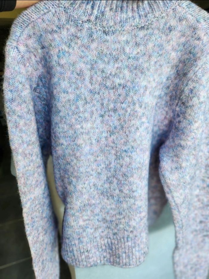 Joli pull col montant tons mauve, bleu et gris. Matière très douce.